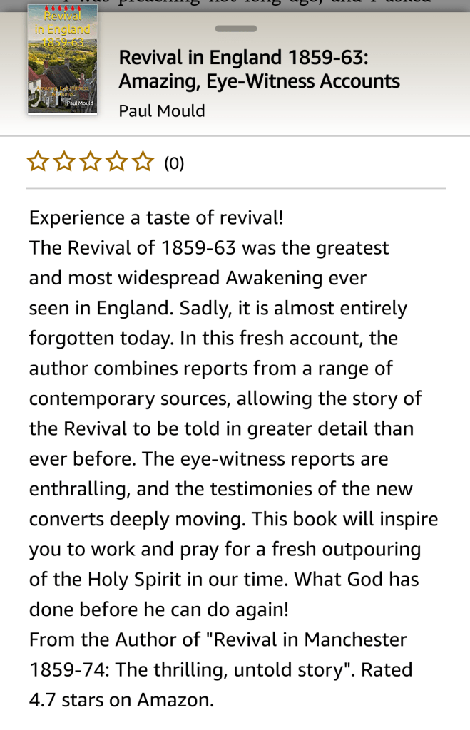 People often ask whether revivals do any good, and whether the fruit is lasting. Without question, we can answer these two points in the affirmative. Did conversions last? The following accounts give support to the view, expressed by Edwin Orr, that “the quality of the conversions was excellent and abiding”.[xix] Hitcham, Suffolk Dear Sir,—In reply to the question at the commencement of the ‘Revival’, No. 160, “How do the converts stand?” I have pleasure in forwarding extracts from a letter received a few days since from the parish of Hitcham, Suffolk, in which I worked for three years as curate. During the winter of 1860-61, a great awakening took place there, in answer to much prayer for an outpouring of the Spirit, and many (among whom were some notoriously bad characters) came out and boldly testified of Christ and his precious salvation. A year having now elapsed since my removal to another sphere of labour (owing to the death of my rector), being anxious to ascertain a correct and unbiased account of the dear converts’ progress, I employed a judicious Christian friend, well known to all the people, to visit each of them in person, and both by private conversation and by the report of others, closely to investigate their real progress; after which my friend writes thus: “I think I have at last seen most, if not all, that you mentioned, and spoken to them about the one thing, and I trust they, as well as myself, have been strengthened and refreshed. I have spent much of my time with them; there was so much to say that I felt I could not leave them, and they were all so thankful to have someone call and speak to them; but I have not felt my time wasted, for it has been a time of great refreshing to my own soul. I cannot express the joy I have felt in seeing them; excepting the few who have gone back: they are all so full of Jesus, and seem to have grown in grace, so that one cannot help being struck with it; and I believe that the enemies of the work have been put to silence by the walk of the dear Christians, for no one has said a word to me against the work this time, because they have seen such different results from those they expected.…I need not say how pleased I am to be able to send you so good an account of all. I have felt the weakness of my faith, for I did not expect to find the Christians so strong in faith, and so consistent as they are.” A letter received this morning gives equally cheering accounts of the dear converts, and we can but be filled with thankfulness at so bright a testimony of the stability of the work.[xx] Later, we read of converts from the Revival still going strong around 8 years later in a report from Manchester: “The work of the Lord is still prospering in Manchester, and those converted [some] years ago in the glorious awakening are still rejoicing in Jesus. I accompanied our brethren E. Usher and H. Moorhouse to a meeting where our brother Moorhouse spoke to us words of living power…In the afternoon we had a blessed meeting in a spacious building ‘The Tabernacle’, opened for non-sectarian services. There I saw happy workers distributing tracts etc., who were snatched as ‘brands from the burning’.”[xxi] Some of the other reports in Chapters 2-6 also testify as to the lasting change in the new believers. Nevertheless, it has to be conceded that there were large numbers of converts of the poorest classes who would have found some difficulty in joining the mainstream churches (e.g. because they only had rags to wear). William Carter founded his own “Church of Theatre Converts” in London, and John Ashworth started his “Chapel for the Destitute” in 1858 at Rochdale, but there was little other provision for these people at the time. Sadly, it seems likely that a proportion of them would have returned to their old lives. In later years, however, perhaps some of these may have found a home in William Booth’s Salvation Army (created 1865).