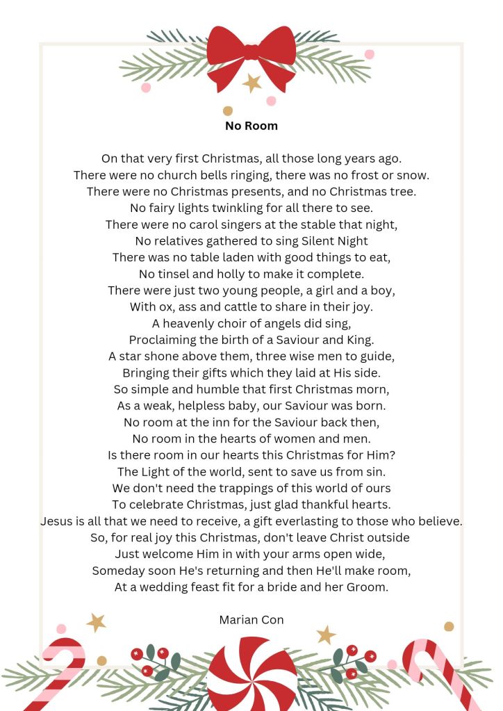 No Room by Marian Conn Share this:Tweet Click to email a link to a friend (Opens in new window) Email Click to share on Telegram (Opens in new window) Telegram Click to share on WhatsApp (Opens in new window) WhatsApp More Click to print (Opens in new window) Print Share on TumblrPocketLike Loading...